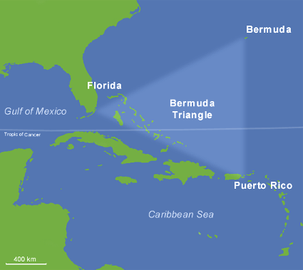 Atlantik Okyanusu’nda bulunan, 50’den fazla geminin ve 20’den fazla uçağın gizemli şekilde kaybolduğu söylenilen bölgedir. Burası, tam olarak uçları Florida, Porto Riko ve Bermuda arasında kalan bir üçgen alandır.