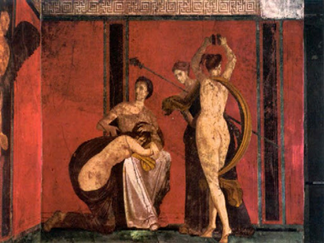Antik Roman şehri Pompeii’nin geri kalanı gibi Gizemler Villası da milattan sonra 79 yılında Vesuvius Dağı’nın patlamasıyla küller altında kalmıştı ve bu bina ana şehrin arkeologlar tarafından bulunmasından çok sonra 1909’dan itibaren gün yüzüne çıktı. Yaklaşık 70 metre kare olan bu villanın duvarları volkanik küllerin havayla teması kesmesi sayesinde korunmuş etkileyici fresklerle dolu. Gizemler Villası, adını içindeki odalardan birinde bulunan bir resimden almıştır. Bu odanın bir yemek odası olabileceği düşünülüyor, duvarları MÖ 70-60 yıllarında yapıldığı hesaplanan kaliteli fresklerle donatılmış. Freskler’in konu aldığı olay hakkında fikir farklılıkları olsa da, genel görüş freskte gözüken genç kadının eski bir grekoromen inancı olan Dionysus Gizemleri tarikatına kabul töreni olduğu yönünde. Buradaki rengarenk resimlerde onlarca insan boyunda figür bulunuyor. Bütün hareketliliğin ortasında bir sahnede şiddet gören, bir sonraki sahnede ise ziller çalarak dans eden nü bir kadın var.